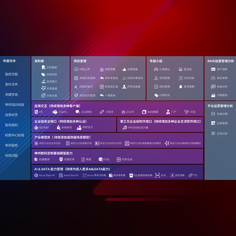医疗器械产品上市前,,,,要熟悉严格与繁复评审标准,,,整理分析监管机构指导文件中的海量信息。。。企业急需一个智能化解决方案,,,,提升知识管理效率,,,,提高评审通过率,,以提升其市场竞争力。。。